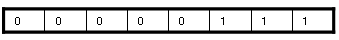 8 bit -> 1 byte 입니다. 아래는 8 bit(1byte) 메모리에 숫자 7이 저장된 모습입니다