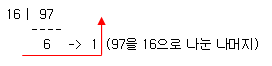 따라서 10 진수 97 은 16진수 61 이 됩니다.