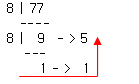우선 10 진수를 8 진수로 변경해 보겠습니다. 10 진수 77 을 가지고 변환해 보겠습니다.