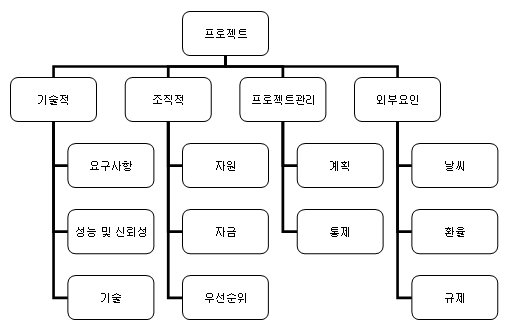위험은 그 성격에 따라 기술적 위험, 프로젝트 관리적 위험, 외부 위험으로 나눌 수 있다